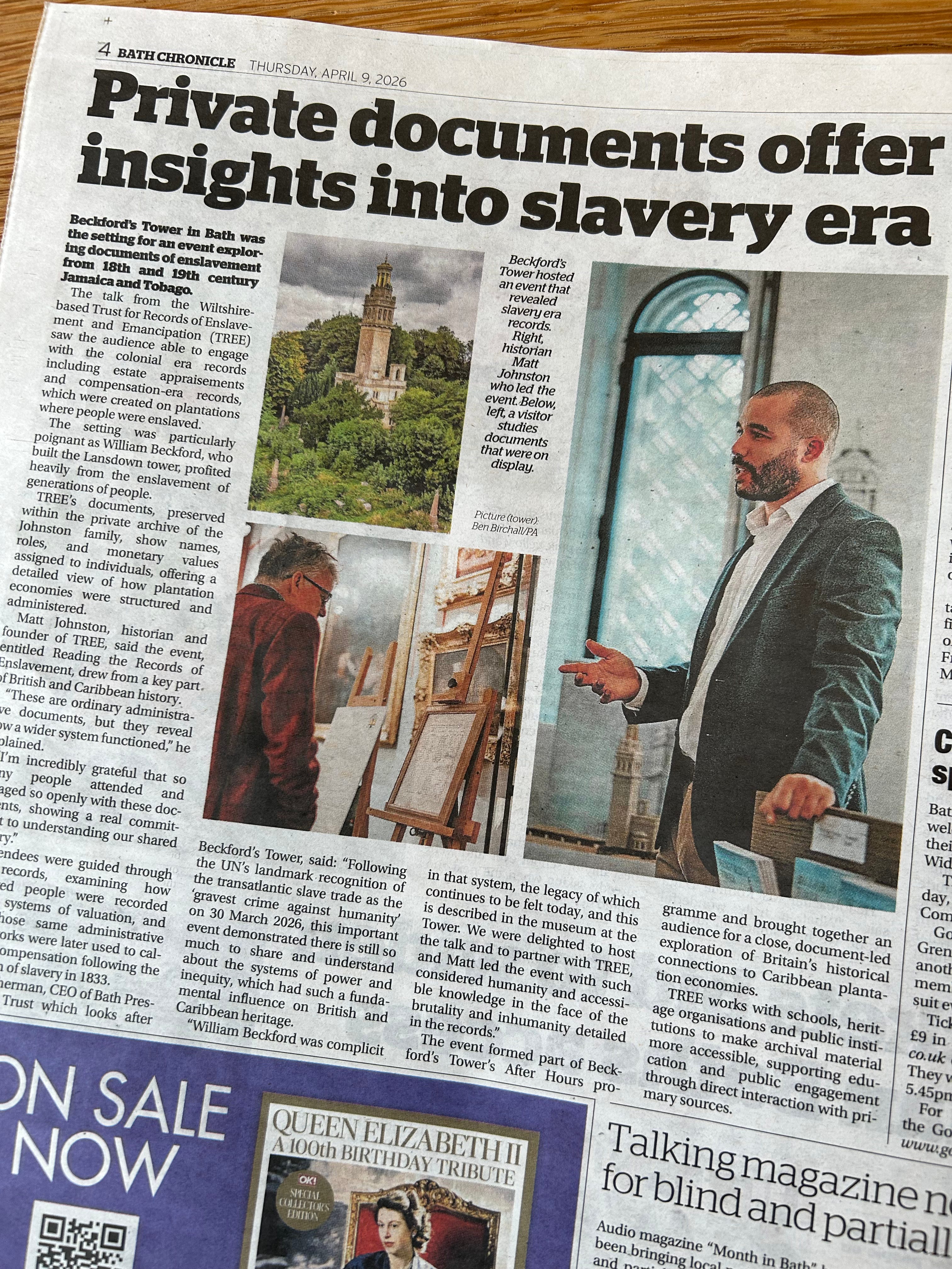 Beckford’s Tower is directly tied to wealth generated through colonial and enslavement-era systems, so holding a talk there required a clear and thoughtful approach. The focus stayed on primary sources - administrative records that were never intended to tell stories, but reveal how those systems functioned.